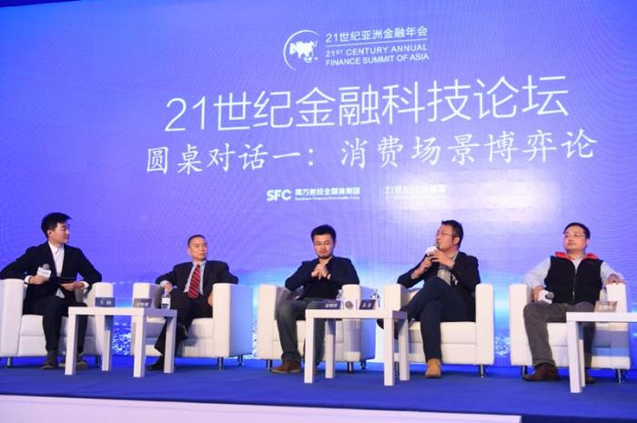 12月6日,由南方财经全媒体集团指导、21世纪经济报道主办的“第十二届21世纪亚洲金融年会”在北京举行。在“21世纪金融科技论坛”上,海尔金控副总裁、海尔云贷总经理汪传国、新网银行平台金融部总经理金晓烨、易日升金融总裁史建伟、51信用卡北京分公司总经理吴迪以“消费场景博弈论”为主题展开了圆桌对话。