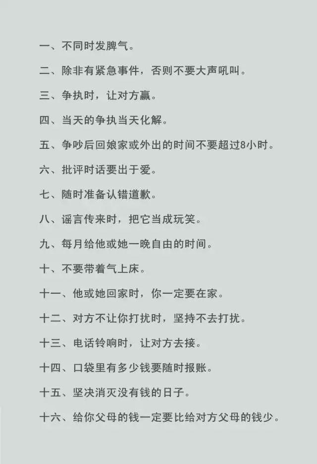等大家静下来,教授说:“如果这4条做不到,你又想有一个稳固的婚姻,那你就得做到以下16条。”
