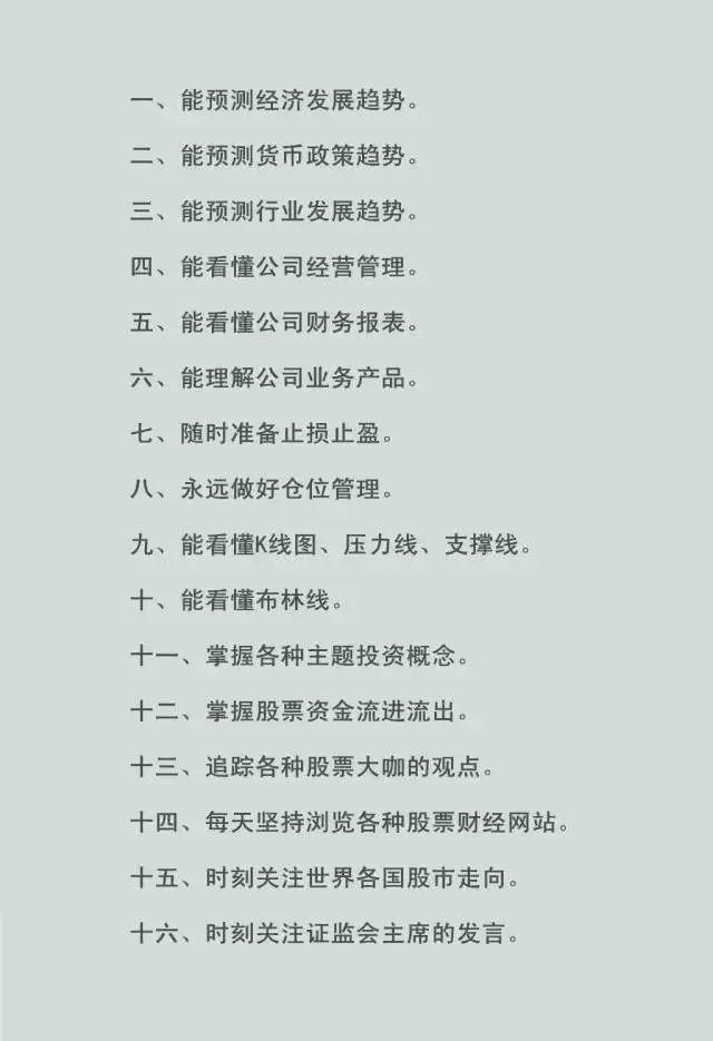 相信绝大多数的著名经济学家、知名证券分析师、股市大咖们和散户朋友们正在做以上16条或256条中的一些事。