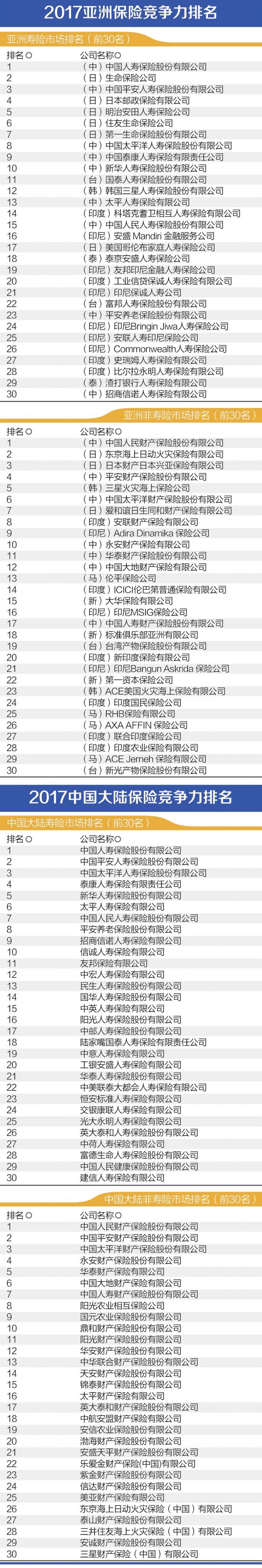 亚洲保险竞争力排名发布 中国大陆寿险、非寿险公司各26家入百强