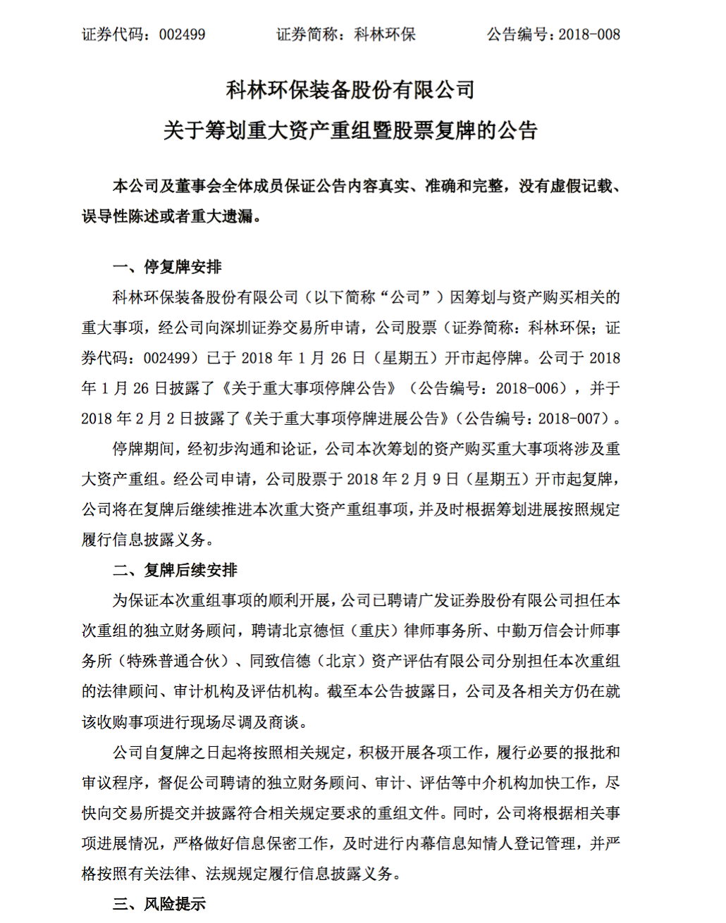 8日当天科林环保(002499.SZ)、南风化工(000737.SZ)、大东南(002263.SZ)三家谋划重大资产重组的深市企业复牌;而*ST东海A(000613.SZ)尚在“筹划重大事项”阶段,就同时申请复牌。值得玩味的是,三家公司在复牌公告中仍未披露交易对方详情以及交易手段;截至公告披露日,双方与相关方仍在围绕收购进行商谈或尽调!