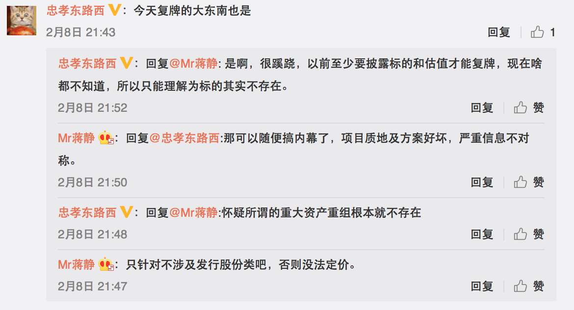 由于以往惯例中,重大资产重组复牌后,上市公司会进一步披露交易方案;但此次上述公司复牌后,除了公告中介机构与财务顾问名称以外,未对重组方案有更明确的披露,这让业内人士摸不着头脑。