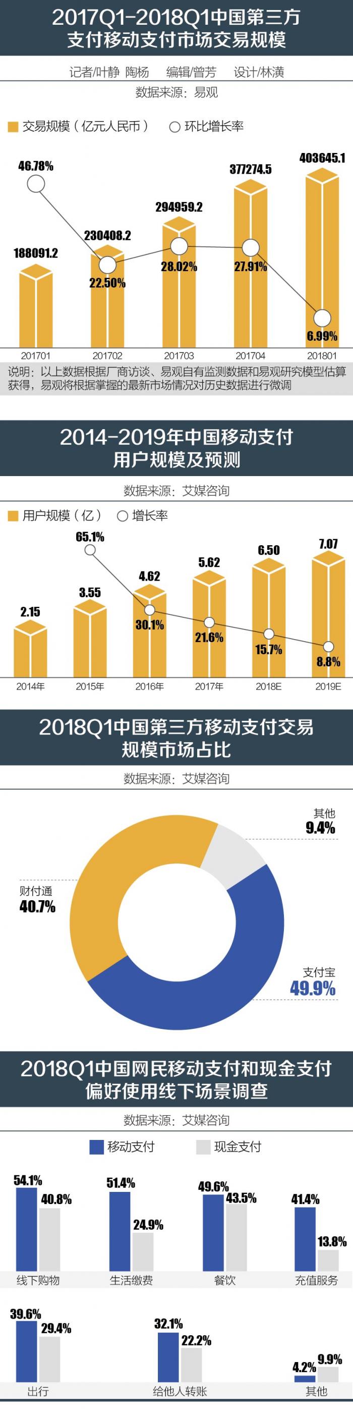 近期Analysys易观发布了《中国第三方支付移动支付市场季度监测报告2018年第一季度》,根据报告显示2018年第一季度,中国第三方移动支付市场交易环比增长6.99%,总交易规模达到了40.36万亿元人民币。移动支付逐步取代ATM的地位,开始逐鹿江湖。