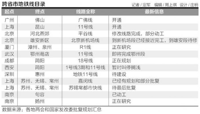 根据记者了解,近期一大波一二线城市的跨省市地铁项目将陆续推出。