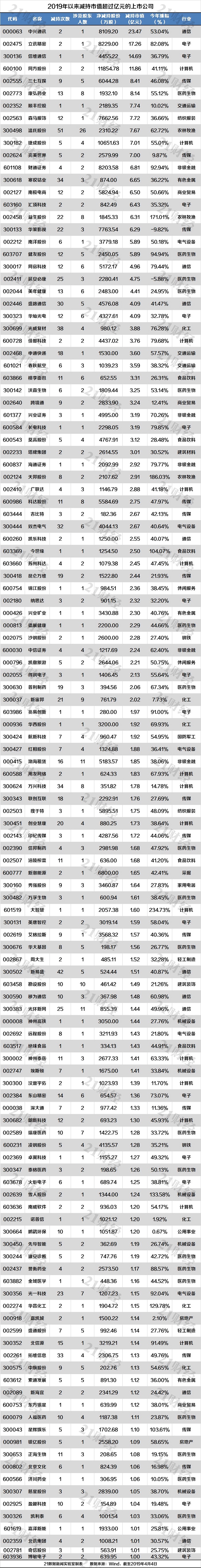 4公司减持市值超过10亿元