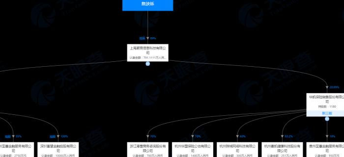天眼查信息显示,詹詇铄也是上海灏商信息科技公司的实际控制人,持股比例为89%;吴禕卉则控股上海涛勤投资公司。