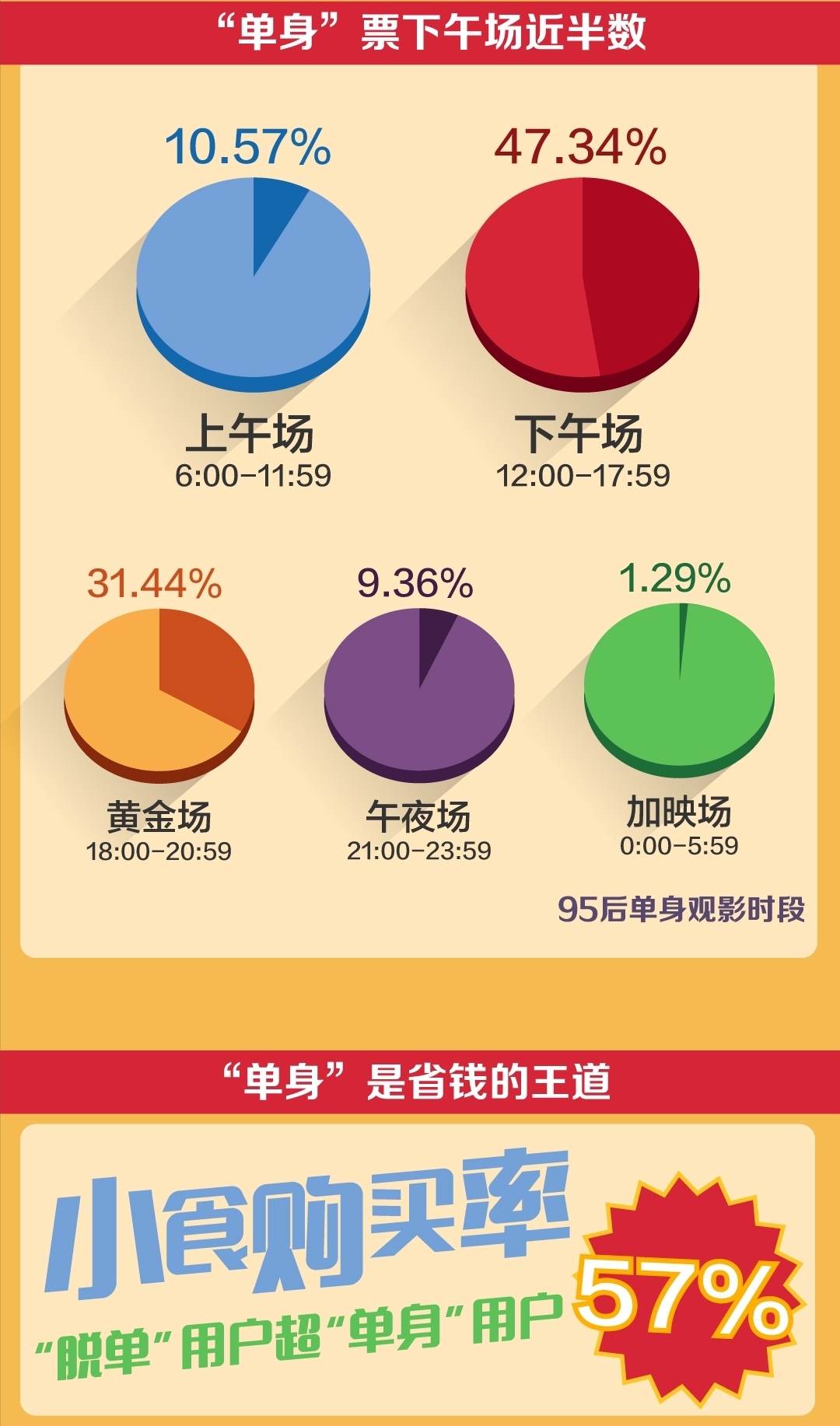 3.近半数“单身狗”选择下午场观影,省钱是单身观影王道