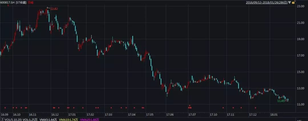 通过股价走势可看出,2016年12月以来,ST宏盛的股价一路下跌,至2018年12月7日收盘,拉萨知合所持ST宏盛全部股票市值为3.63亿元,缩水超六成。