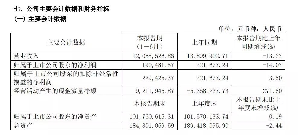 近日,ST宏盛发布了2019年半年报,数据显示,报告期内公司实现营业收入1205.6万元,同比下降13.3%,主要是公司停止经营水环境修复业务,同时汽车内饰业务尚处于起步阶段,收入规模尚待进一步提升。另外,公司实现归属于上市公司股东的净利润19.1万元,同比下降14.1%。截至报告期末,ST宏盛总资产为1.9亿元,同比下降2.4%。