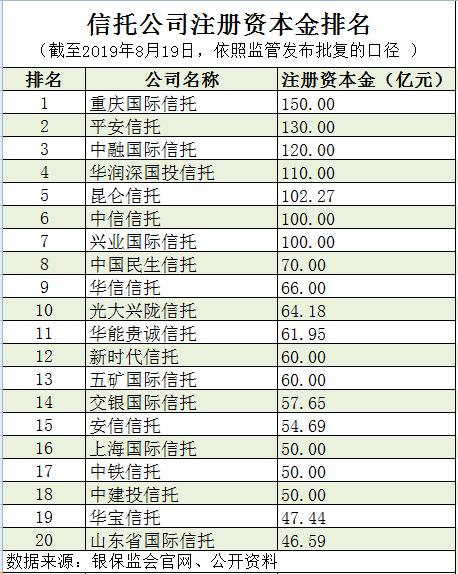 信托增资退潮:今年来仅5家增资 同比减少4家(附最新排名TOP20)