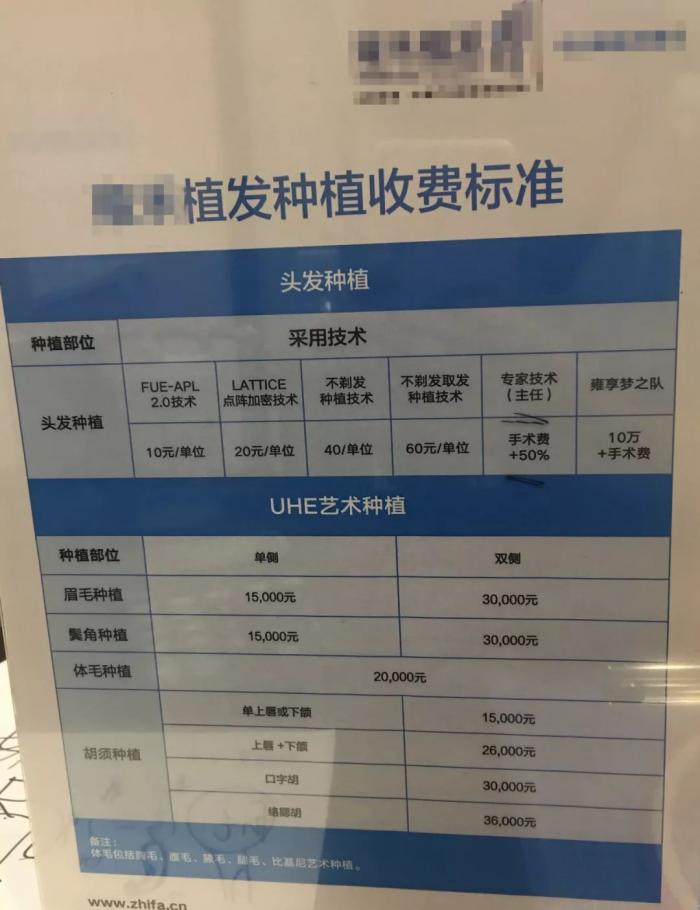 植发手术的费用动辄几万块,且因使用技术和医务人员资历的不同,价格差异也较大。