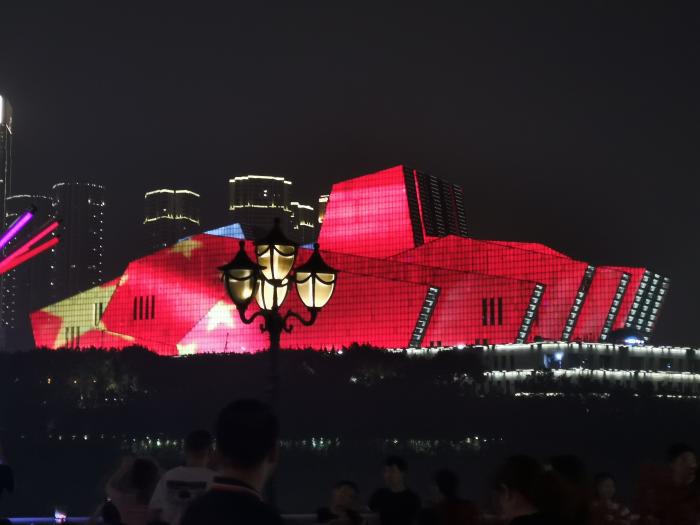从9月21日开始,以“祖国万岁”为主题的灯光秀每晚准时在重庆主城区的长江和嘉陵江段上演,雄壮的数座跨江大桥和鳞次栉比的高楼在光影里换上节日盛装,江水也被染成了彩色,或大气磅礴,或婀娜多姿,尽情表达着山城人民对新中国成立70周年的热烈祝贺和热爱美好生活的喜悦之情。