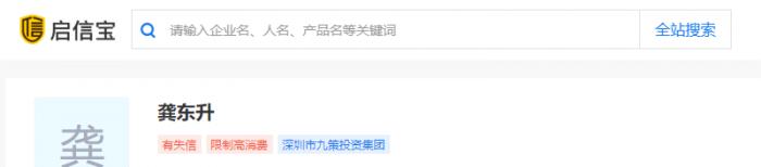 2020年7月20日,启信宝的数据显示,龚东升不仅“有失信”,而且是“限制高消费”的。