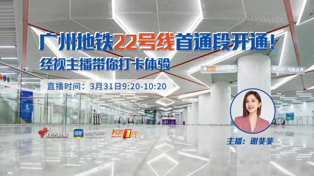 广州地铁22号线首通段(番禺广场至陈头岗)自3月31日首班车起正式开通运营。这条地铁路线具体有什么特色?3月31日9:20跟着经视主播斐斐一起打卡体验!