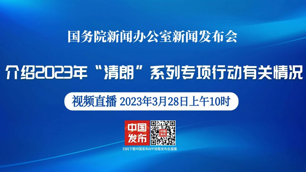 国务院新闻办公室于2023年3月28日(星期二)上午10时举行新闻发布会,请国家互联网信息办公室副主任牛一兵介绍2023年“清朗”系列专项行动有关情况,并答记者问。