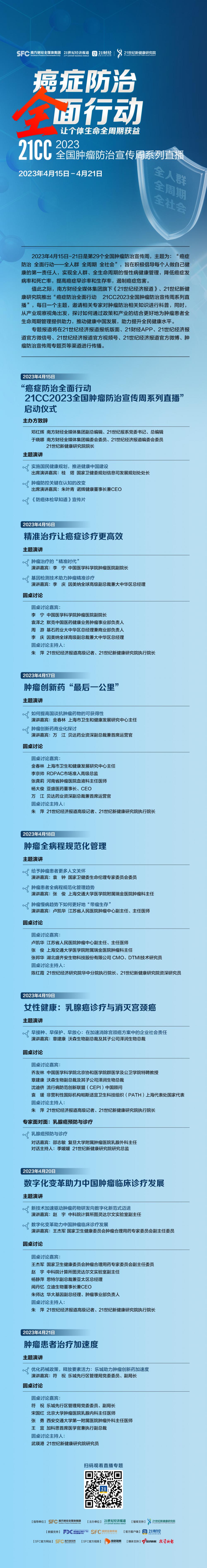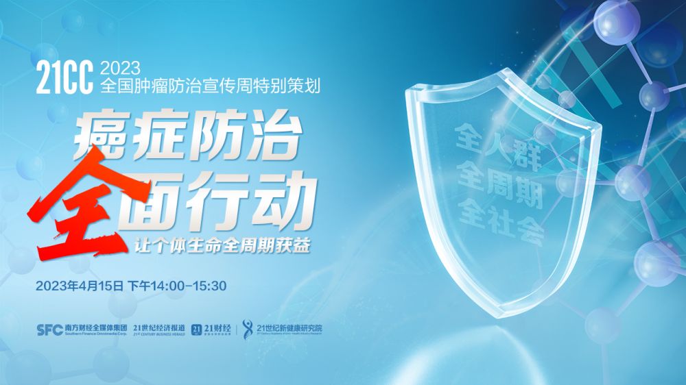 【简介】2023年4月15-21日是第29个全国肿瘤防治宣传周,今年主题是“癌症防治 全面行动——全人群 全周期 全社会”。作为主流媒体,南方财经全媒体集团《21世纪经济报道》、21世纪新健康研究院特策划推出“癌症防治全面行动 21CC2023全国肿瘤防治宣传周系列直播”,每天一个主题,邀请相关专家对肿瘤防治相关知识进行科普;同时,从产业观察视角出发,邀请业界的专家和行业领导者探讨如何通过政策和产业的结合更好地为肿瘤患者全生命周期管理提供助力,推动健康中国发展。