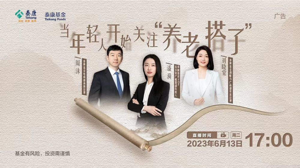 现在流行一种新型“搭子”关系,社交平台上也开始探讨“养老搭子”等新兴养老模式可行性。年轻人关注“养老搭子”,这透露出哪些信号?长寿时代下年轻人又该如何做好养老规划和选择适合自己的养老金融产品?今天邀请到了泰康基金FOF及多资产部负责人潘漪女士、泰康基金战略与产品部资深经理刘晓棠女士,与大家畅聊养老投资的话题。