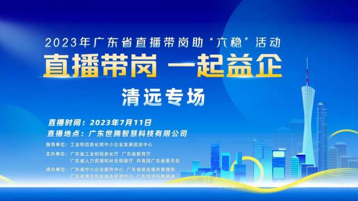 本次项目系2023年广东省直播带岗助“六稳”专场直播活动,由工业和信息化部中小企业发展促进中心指导,广东省工业和信息化厅、广东省教育厅、广东省人力资源和社会保障厅及共青团广东省委员会共同主办,广东省中小企业服务中心、广东省就业服务管理局、广东省青年创业就业促进中心以及广东经济科教频道共同承办。
