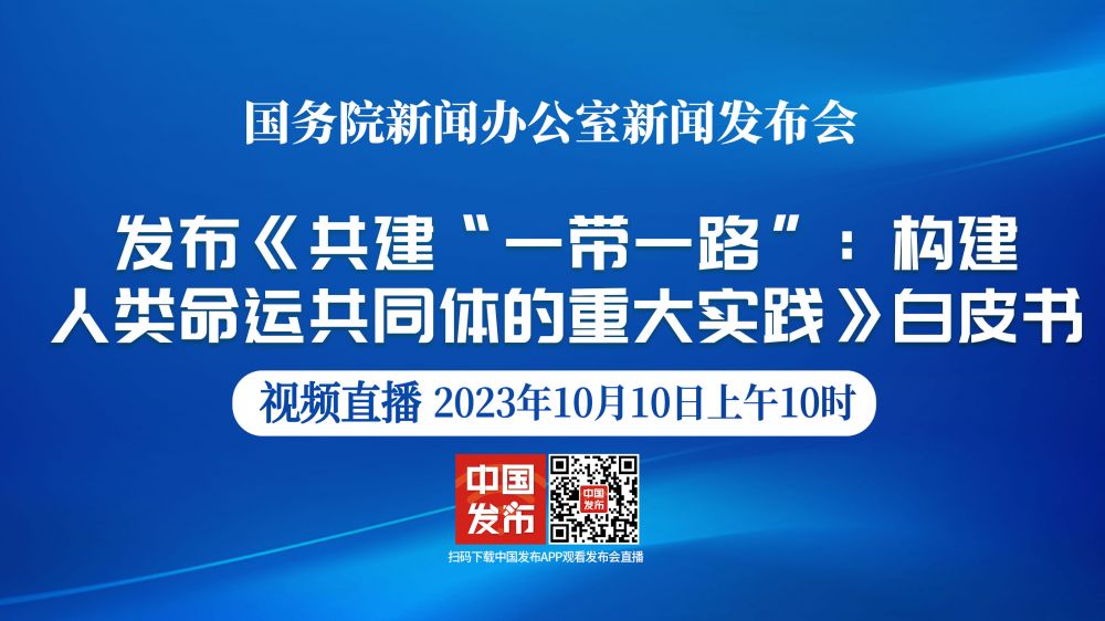 国务院新闻办公室于2023年10月10日(星期二)上午10时举行新闻发布会,发布《共建“一带一路”:构建人类命运共同体的重大实践》白皮书,请国家发展改革委副主任丛亮、商务部副部长郭婷婷、外交部有关负责人和国务院新闻办公室新闻发言人出席,介绍白皮书有关情况并答记者问。