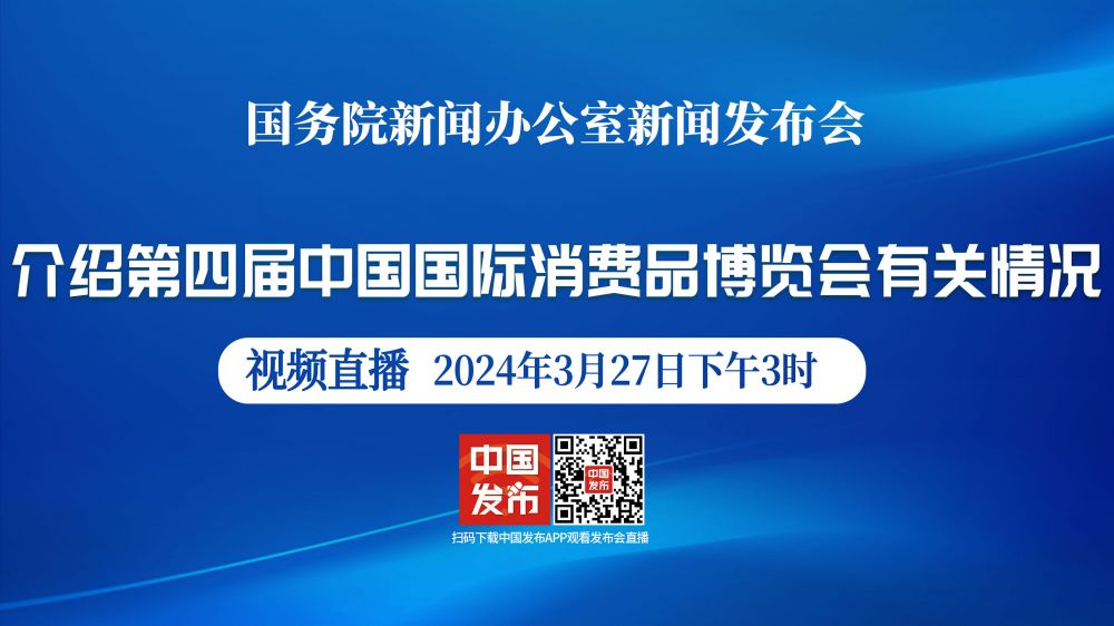 国务院新闻办公室于2024年3月27日(星期三)下午3时举行新闻发布会,请商务部副部长盛秋平、海南省副省长陈怀宇介绍第四届中国国际消费品博览会有关情况,并答记者问。