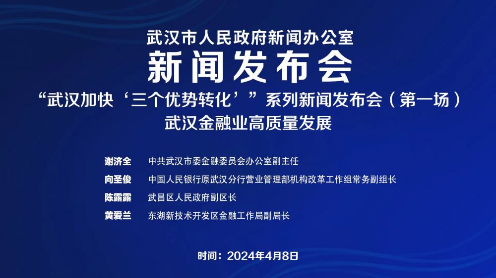 2024年4月8日10:00,武汉市人民政府新闻办公室召开“武汉加快‘三个优势转化’”系列新闻发布会(第一场)-武汉金融业高质量发展,并答记者问。