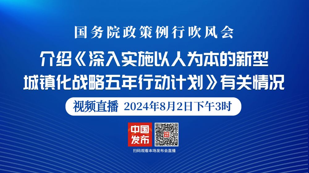 国务院新闻办公室于2024年8月2日(星期五)下午3时举行国务院政策例行吹风会,请国家发展改革委副主任郑备和公安部、财政部、人力资源社会保障部、自然资源部、住房城乡建设部有关负责人介绍《深入实施以人为本的新型城镇化战略五年行动计划》有关情况,并答记者问。