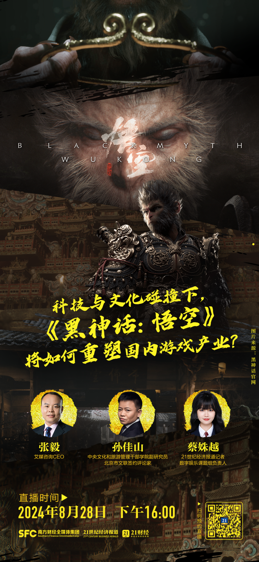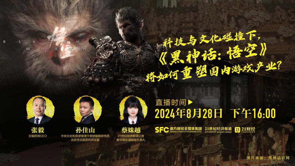 8月27日至28日,南财合规科技数字娱乐课题组将与一线行业大咖、业界专家展开圆桌对话,探讨已经吹响了游戏工业化号角《黑神话:悟空》,将如何重塑国内游戏产业。