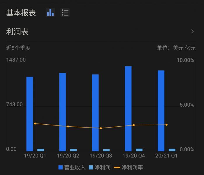 【沃尔玛近5个季度数据图表】