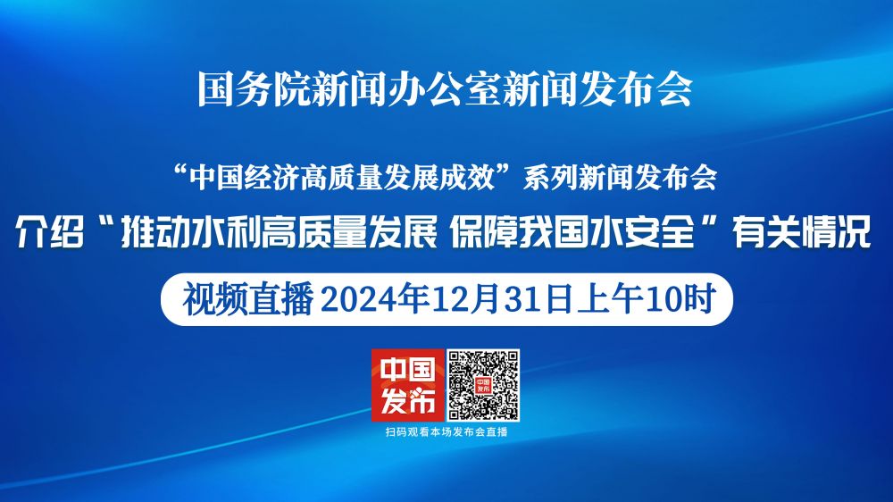 国务院新闻办公室于2024年12月31日(星期二)上午10时举行“中国经济高质量发展成效”系列新闻发布会,请水利部副部长陈敏介绍“推动水利高质量发展、保障我国水安全”有关情况,并答记者问。