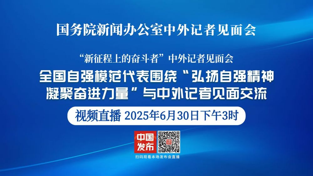 国务院新闻办公室于2025年6月30日(星期一)下午3时举行“新征程上的奋斗者”中外记者见面会,请全国自强模范代表围绕“弘扬自强精神 凝聚奋进力量”与中外记者见面交流。