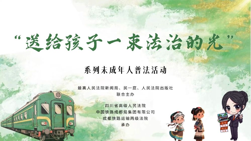 由最高人民法院新闻局、民一庭,人民法院出版社联合主办, 四川省高级人民法院、中国铁路成都局集团有限公司、成都铁路运输两级法院承办的“送给孩子一束法治的光”未成年人普法活动(第五场)于7月2日上午10:00进行网络直播。