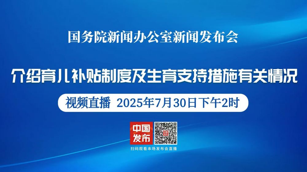 国务院新闻办公室于2025年7月30日(星期三)下午2时举行新闻发布会,请国家卫生健康委副主任郭燕红和财政部、国家医保局、全国总工会有关负责人介绍育儿补贴制度及生育支持措施有关情况,并答记者问。