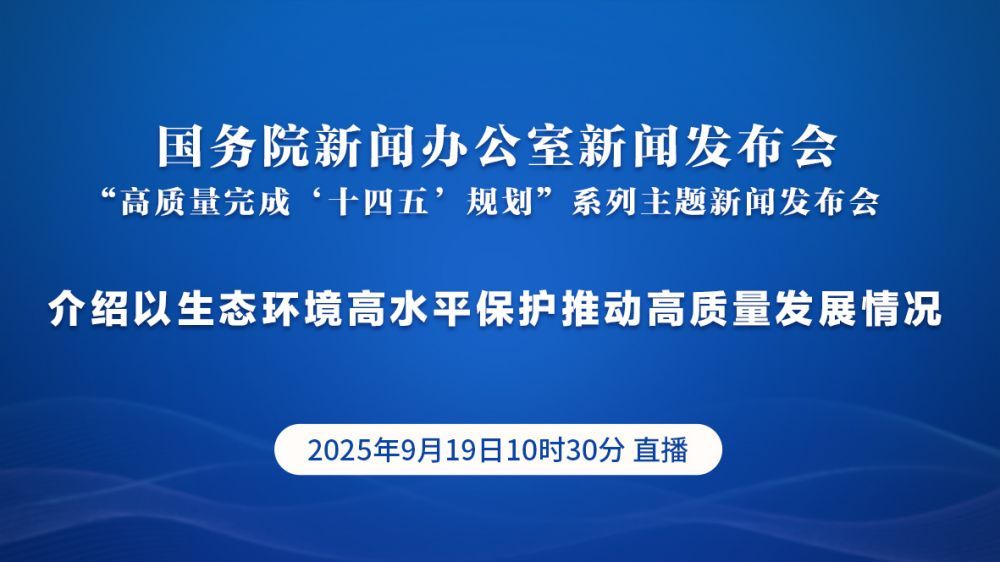 国务院新闻办公室于2025年9月19日(星期五)上午10时30分举行“高质量完成‘十四五’规划”系列主题新闻发布会,请生态环境部部长黄润秋介绍以生态环境高水平保护推动高质量发展情况,并答记者问。