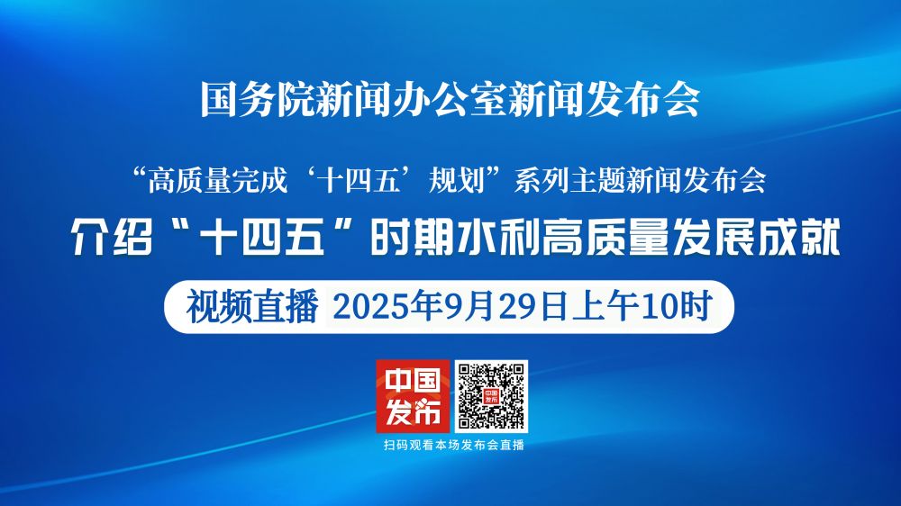 国务院新闻办公室于2025年9月29日(星期一)上午10时举行“高质量完成‘十四五’规划”系列主题新闻发布会,请水利部部长李国英介绍“十四五”时期水利高质量发展成就,并答记者问。