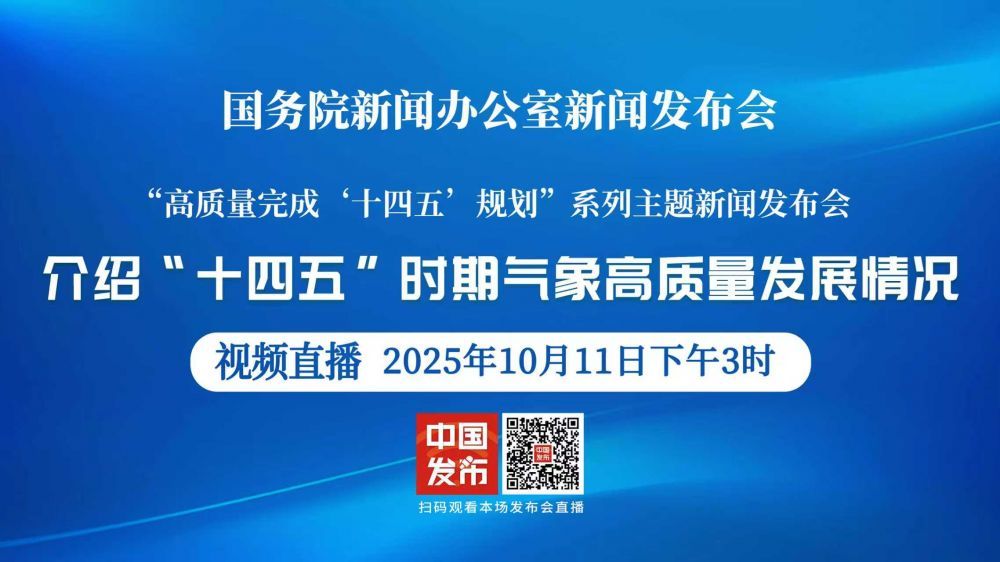 国务院新闻办公室于2025年10月11日(星期六)下午3时举行“高质量完成‘十四五’规划”系列主题新闻发布会,请中国气象局局长陈振林介绍“十四五”时期气象高质量发展情况,并答记者问。