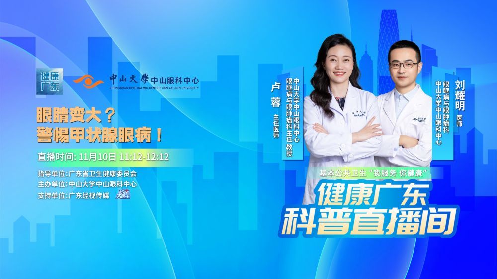 甲状腺的问题还会“攻击”眼睛?为什么好端端的眼睛会悄悄变大?甲状腺眼病为什么会出现年轻化趋势?本次直播邀请了中山大学中山眼科中心小儿眼眶病与眼肿瘤科卢蓉主任、刘耀明医生,一起关注甲状腺眼病!