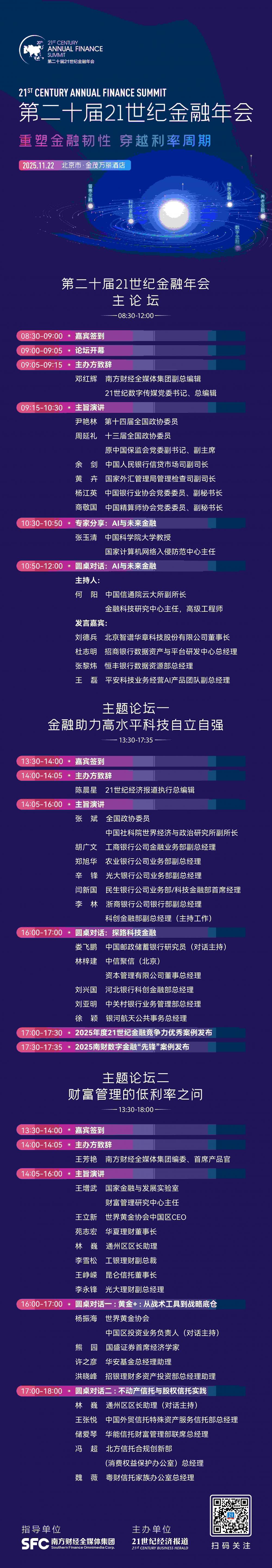 在“十五五”规划开局、利率环境步入新常态的背景下,财富管理行业面临深刻变革。低利率时代如何优化资产配置、捍卫居民“钱袋子”,成为关乎金融健康与人民获得感的核心议题。本次平行论坛以“财富管理的低利率之问”为主题,特邀机构领袖与权威学者,共同探讨居民财富从房产依赖转向多元配置的可行路径,为行业穿越周期、构建韧性提供前瞻思考与破局之道。