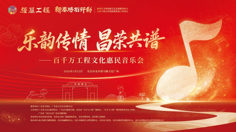 为深入实施广东省委省政府“百千万工程”,贯彻落实“百校联百县百千万工程”行动部署,实施强基工程,展现乐昌在全域帮扶工作合力实践中的成效,推进广东艺术职业学院与乐昌市“三个一”结对共建工作,让艺术浸润乡土、凝聚人心,为乐昌锚定高质量发展、全面推进乡村振兴注入持久深厚的精神文化力量。广东艺术职业学院创排“乐韵传情.昌荣共谱”——百千万工程文化惠民音乐会。