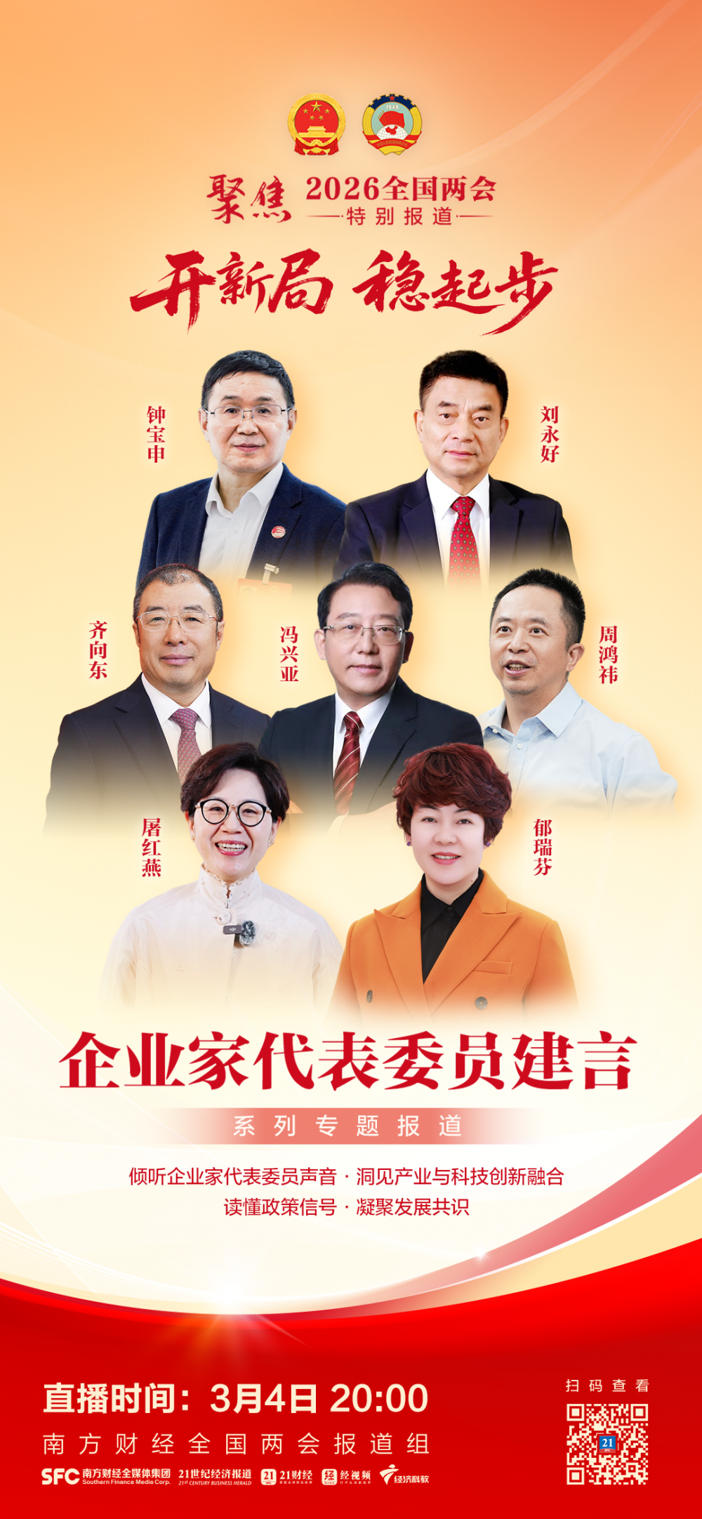 倾听企业家代表委员声音,洞见产业与科技创新融合,读懂政策信号,凝聚发展共识。
