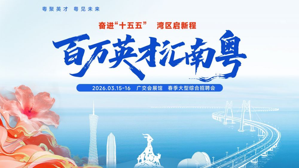 2026年“十五五”开局之年,“百万英才汇南粤”2026年春季大型招聘会于3月15日—16日在广州市广交会展馆D区17.1、17.2馆盛大启幕!本次招聘会聚焦制造业与服务业“两业融合”,创新采用“两馆分区、产业聚类”新模式,根据行业分设17个招聘专区,汇聚超7万个岗位,让求职更高效、更精准,促进产业与人才同频共振!
