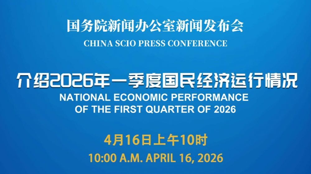 国务院新闻办公室将于2026年4月16日(星期四)上午10时举行新闻发布会,请国家统计局副局长毛盛勇介绍2026年一季度国民经济运行情况,并答记者问。