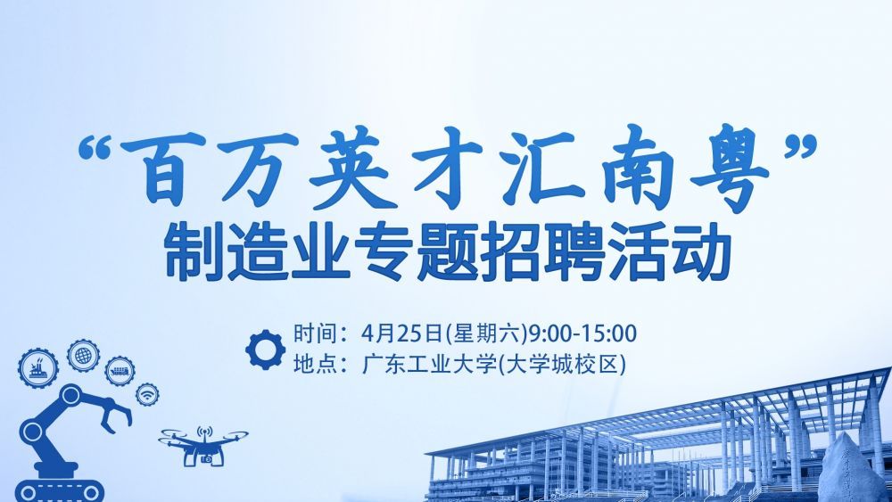 为贯彻落实全省高质量发展大会部署要求,推动“百万英才汇南粤”行动计划落地见效,省委人才办、省工业和信息化厅、省教育厅、省人力资源社会保障厅联合主办“百万英才汇南粤”2026年制造业专题招聘活动。围绕制造业企业特色现场划分新一代电子信息、先进材料、智能家电、轻工纺织、生物医药、新能源汽车等领域,特别是人工智能、机器人等重点产业,组织不少于300家企业到现场招聘,突出制造业企业专题特色优势。