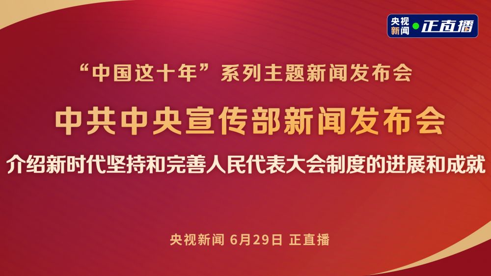 中共中央宣传部于2022年6月29日(星期三)上午10时举行“中国这十年”系列主题新闻发布会,全国人大常委会副秘书长汪铁民、全国人大常委会办公厅研究室主任宋锐介绍新时代坚持和完善人民代表大会制度的进展和成就,并答记者问。(来源:央视新闻)