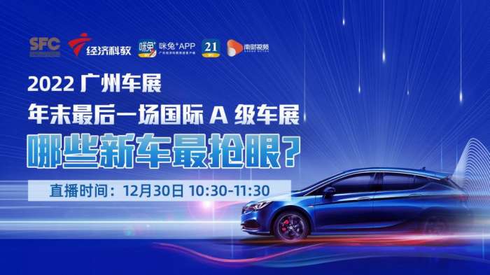 作为国内三大汽车展览会之一,广州车展被视为年度收官之作,素有“下一年车市风向标”之称。预计2022广州车展参展新车达28款以上,以新车型居多,多款重磅车型将登陆车展首发亮相。12月30日10:30-11:30,南方财经全媒体集团记者带你通览2022年末最后一场国际A级车展,看看哪些新车最抢眼!