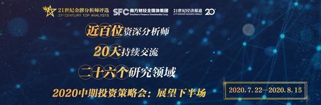 7月22日——8月15日,《21世纪经济报道》将通过线上主题演讲的形式,举办“2020中期投资策略会:展望下半场”,围绕26个研究领域开展深度对话。届时,将有近百位资深分析师就各行业下半年投资机会发表主题演说,共论2020下半场投资新策略。
