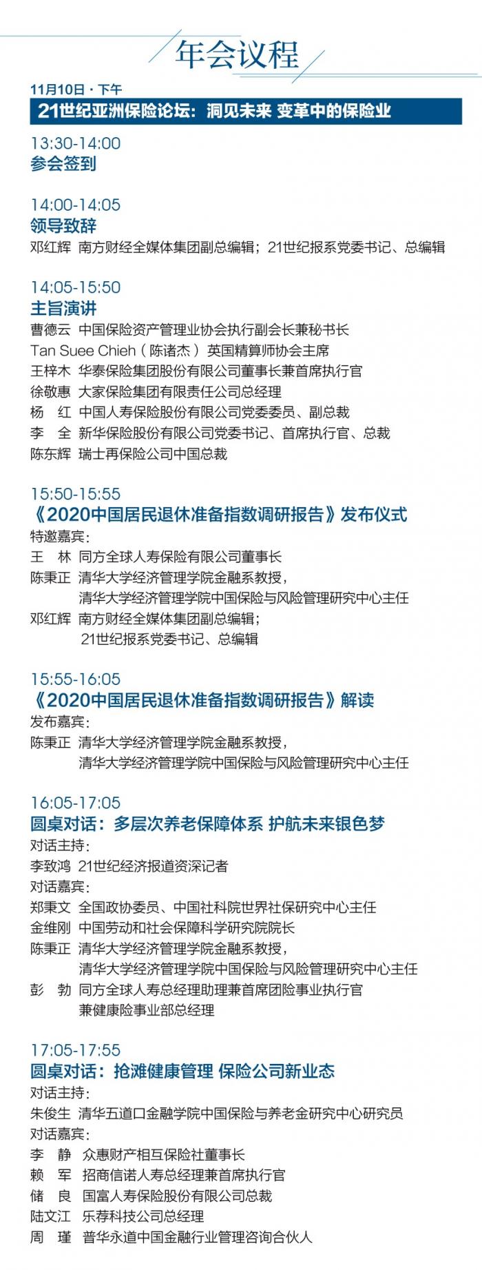 第十五届21世纪亚洲金融年会2020年11月10-11日在北京四季酒店举行。11月10日下午举行的是21世纪亚洲保险年会主论坛,主题为“洞见未来 变革中的保险业”。