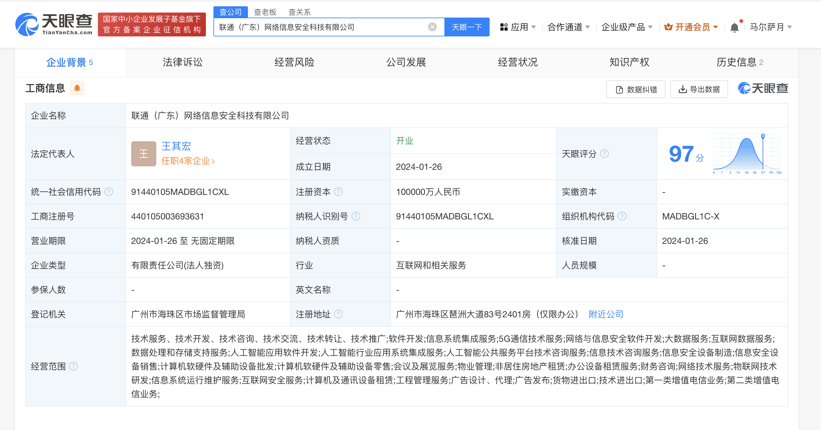 联通在广东成立网络信息安全公司 注册资本10亿