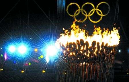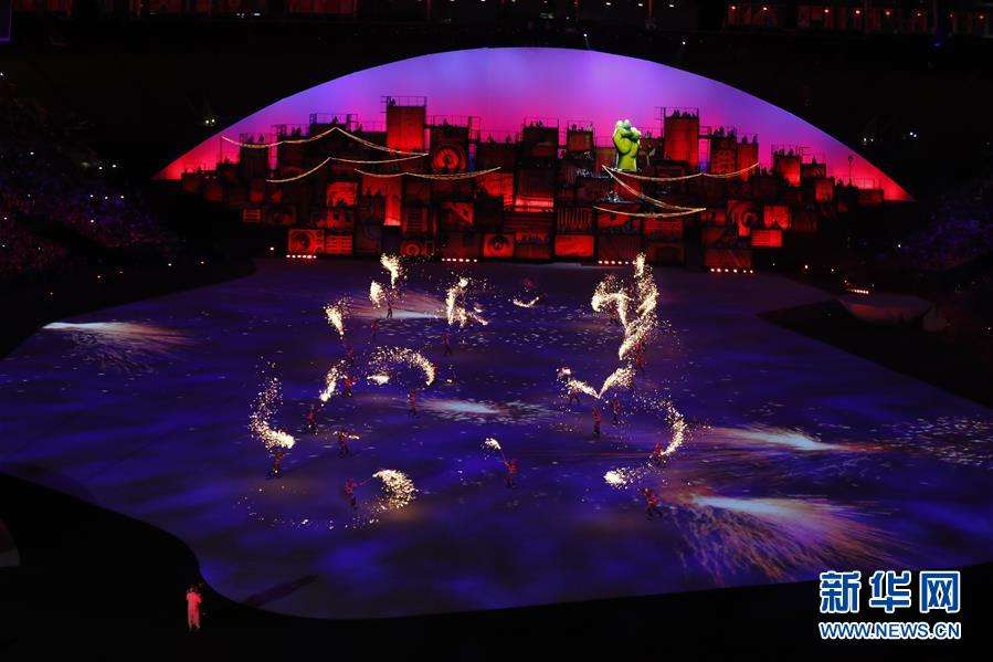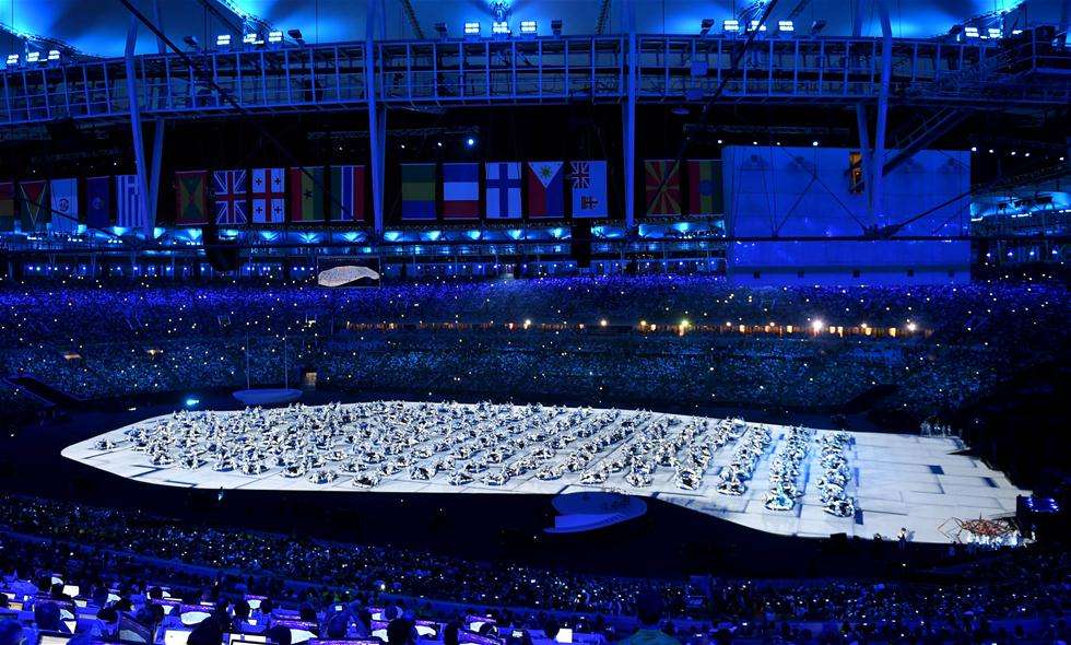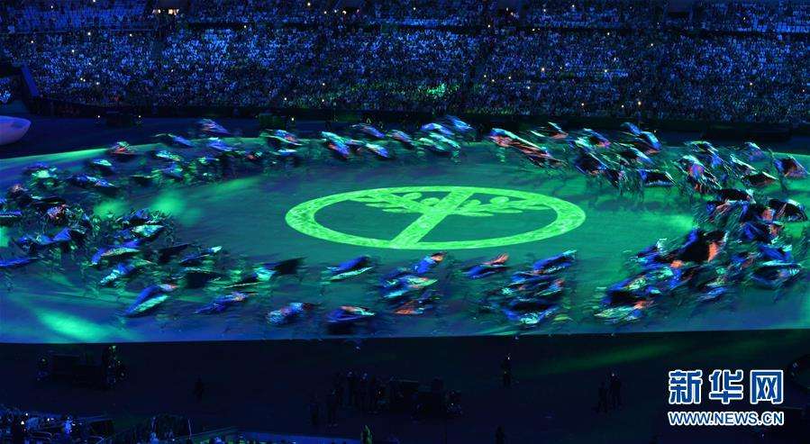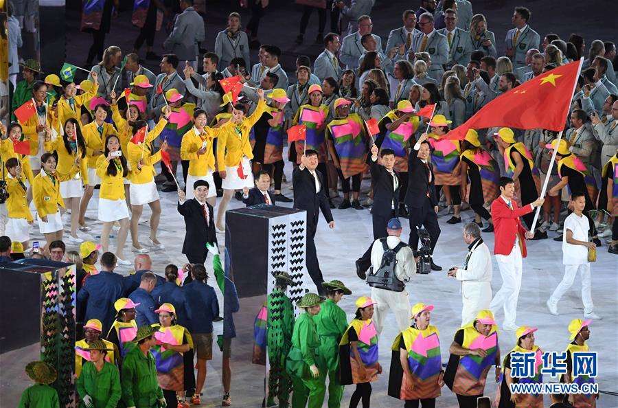 这是中国体育代表团在旗手雷声的引领下步入开幕式会场。