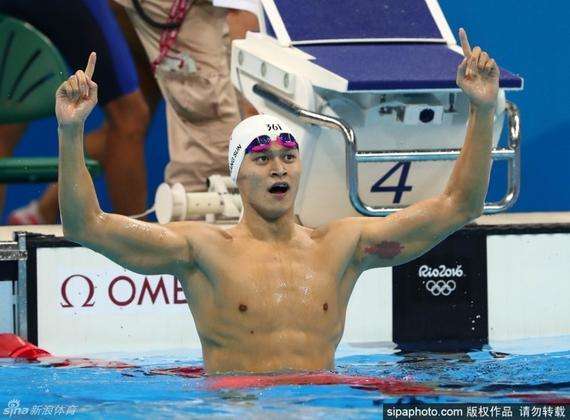 2016里约奥运会男子200米自由泳决赛,孙杨1分44秒65夺金!这也是中国军团第五金!