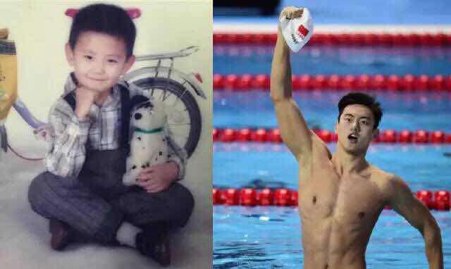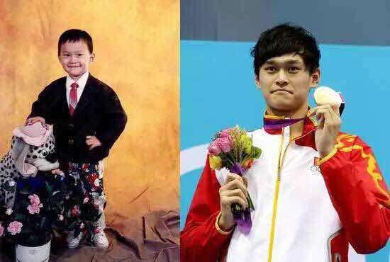 “中国飞鱼”——孙杨。从脸型到笑容甚至眼神,孙杨真是一点都没变,萌萌的样子还透露出一点坏坏的自信。孙杨的小学校长曾在采访中说,孙杨一家当年在正常读书和专业游泳两条路犹豫过,“最后还是启蒙教练朱颖说孙杨手大脚大,骨龄测试能长到1米98,绝对是万里挑一的天才,这才打动孙杨父母。”